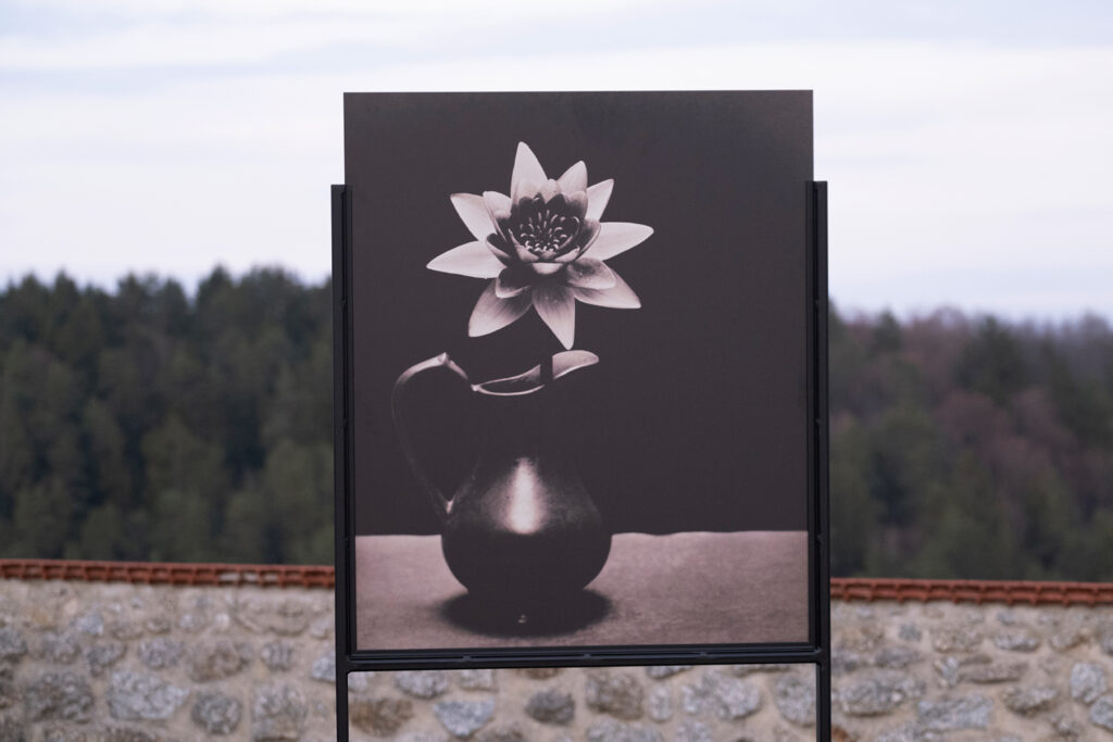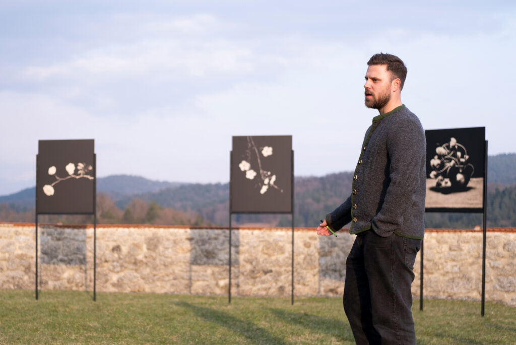 In der für Waldbauer typischen reduzierten Bildsprache knüpfen die Stillleben an klassische Pflanzenstudien an, die zugleich eine hohe Sensibilität für Zeit und Vergänglichkeit offenbaren. Ähnlich wie Miron Schmückle konzentriert sich auch Waldbauer in seinen Pflanzen- und Blumenstudien auf klare Strukturen und feine Details. Die manuelle Dunkelkammerarbeit verleiht den Schwarz-Weiß-Fotografien eine besondere Tiefe und erzeugt eine poetische Spannung zwischen Präzision und stiller Präsenz. Waldbauer fasziniert bei dieser Serie nicht nur die Plastizität, die Beschaffenheit der Oberflächen und die „Fleischigkeit“ der Pflanzen. Es ist auch eine Frage des richtigen Zeitpunkts: den entscheidenden Tag des Verfalls zu erkennen und festzuhalten. Für die Ausstellung hat Martin Waldbauer außerdem die Außeninstallation Edition Ranfels mit fünf Arbeiten entwickelt, die Blumen vor der beeindruckenden natürlichen Kulisse des Burggeländes präsentieren.